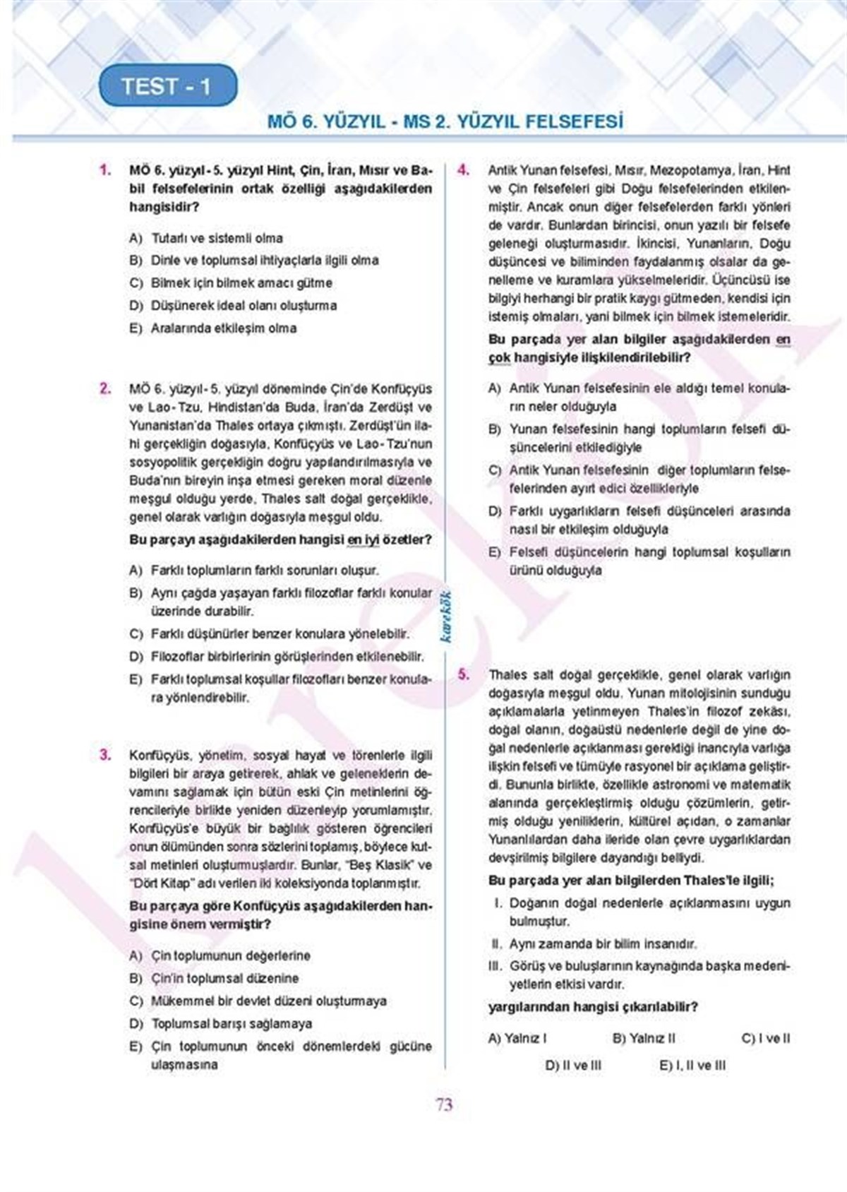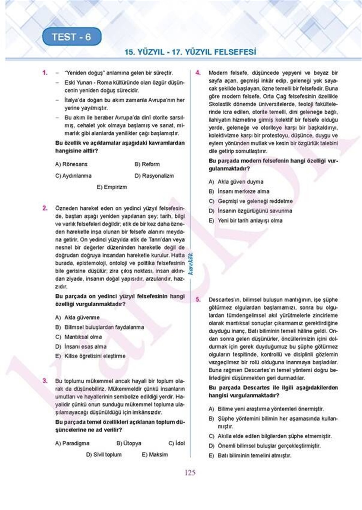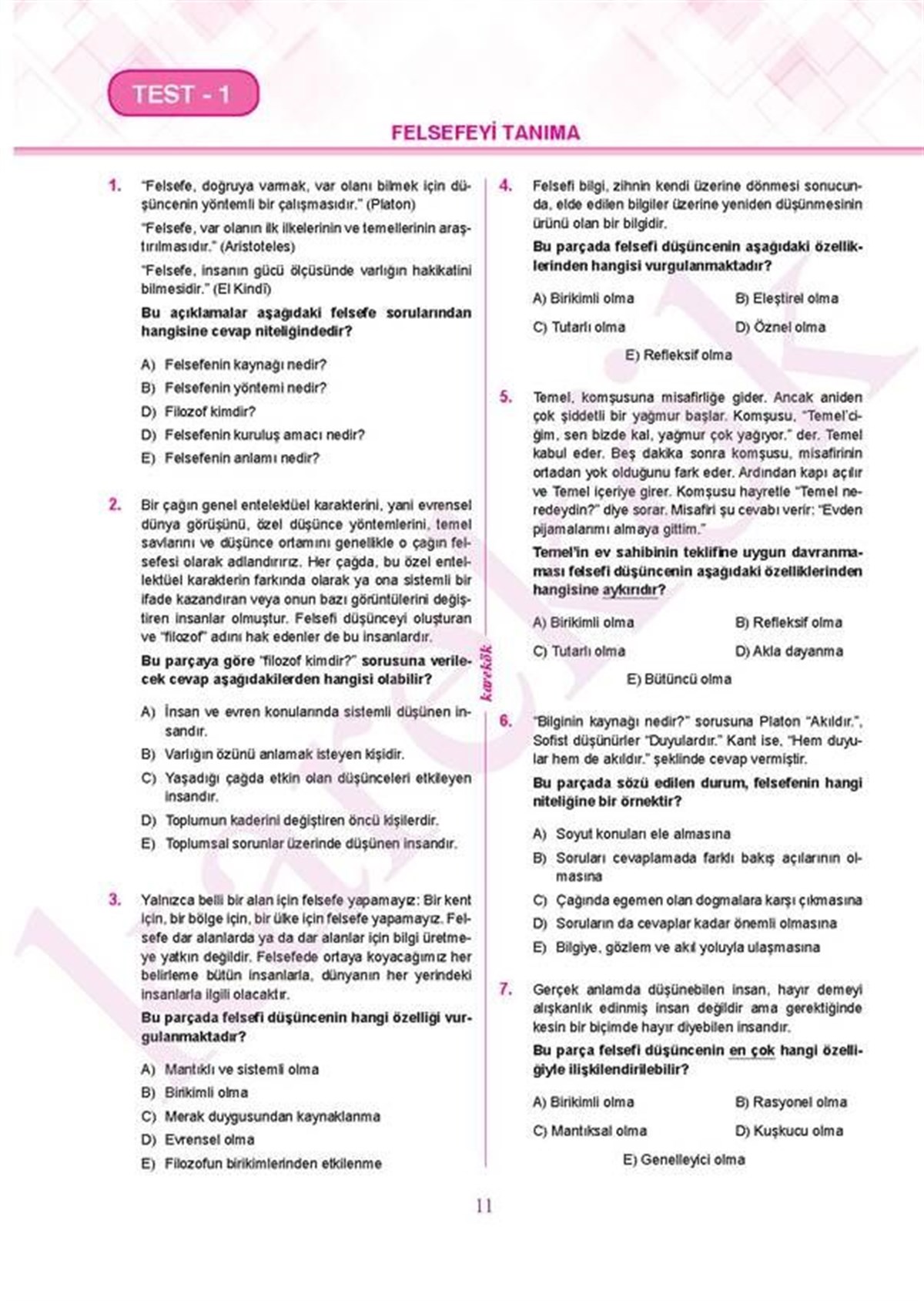 Karekök Yayınları AYT Felsefe Grubu Soru Bankası