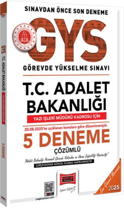 Yargı Yayınları 2025 GYS T.C Adalet Bakanlığı Yazı İşleri Müdürü Kadrosu İçin 5 Deneme