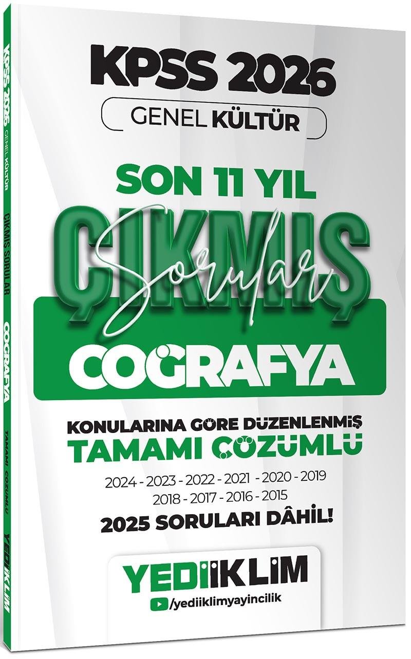 Yediiklim 2026 KPSS Genel Kültür Coğrafya Konularına Göre Tamamı Çözümlü Son 11 Yıl Çıkmış Sorular