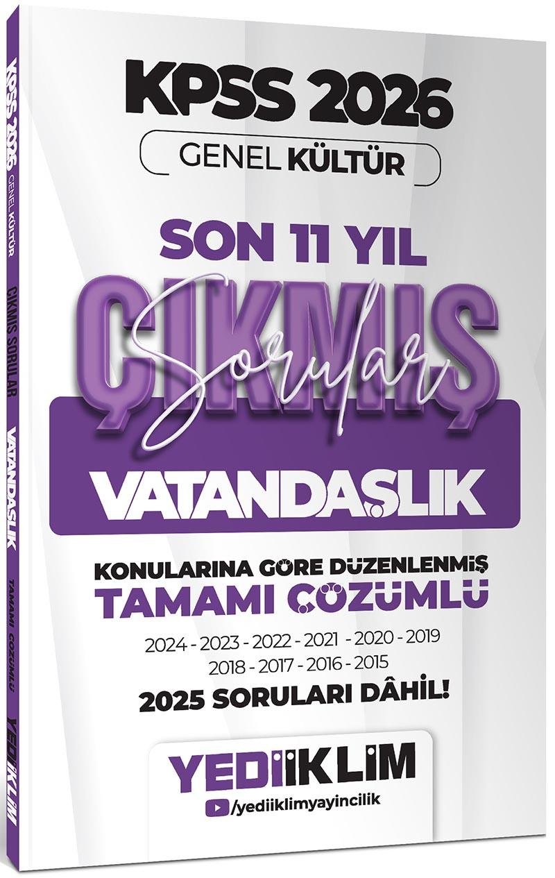 Yediiklim 2026 KPSS Genel Kültür Vatandaşlık Konularına Göre Tamamı Çözümlü Son 11 Yıl Çıkmış Sorular