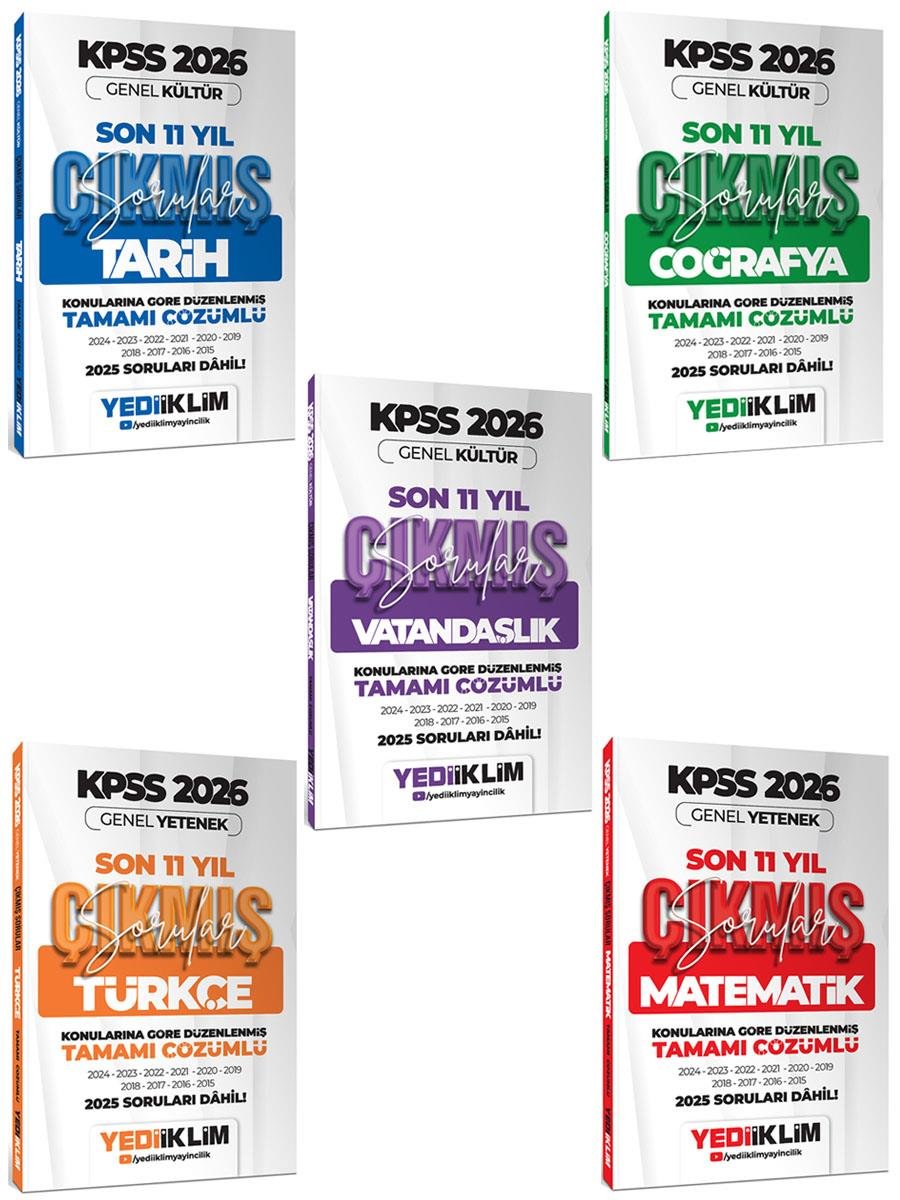 Yediiklim 2026 KPSS GY-GK Lisans Konularına Göre Tamamı Çözümlü Son 11 Yıl Çıkmış Sorular Seti 5 Kitap